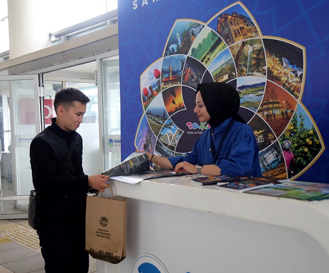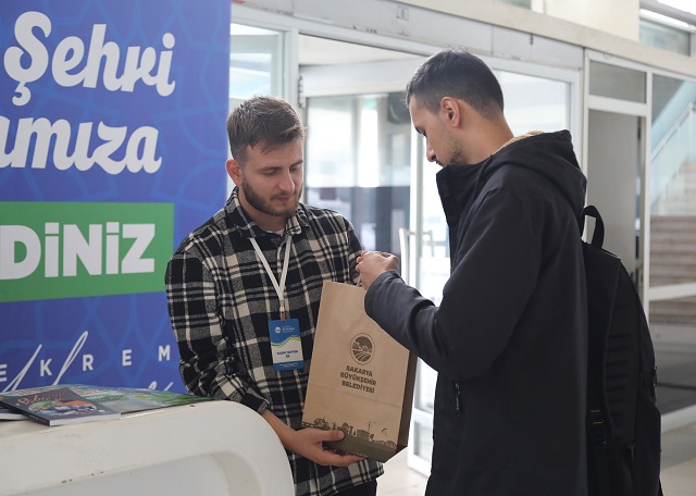 üniversitelilere, öğrenci şehri Sakarya’yı tanıtan kitapçıklar verilirken aynı zamanda şehrin
